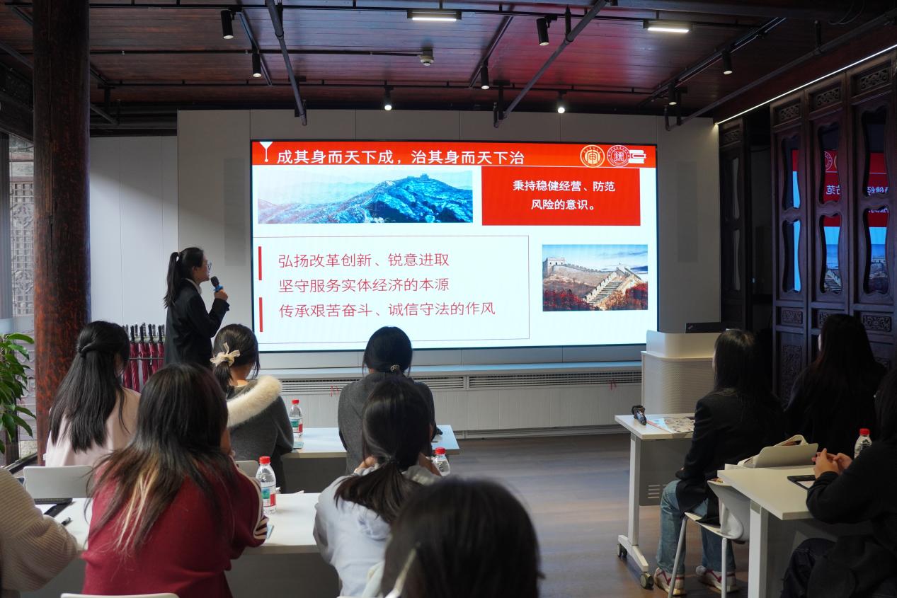 宣讲结束后,新澳门六合彩 老师与苏豪汇升投资举行了座谈交流,就未来深化合作进行了深入探讨交流。双方重点就推进党建共建、深化红色金融宣讲平台等方面达成了初步共识。负责人表示,红色金融故事是历史,更是一面镜子,当今的金融工作要从中汲取智慧,坚守初心、服务实体、防范风险。同时,未来将共同推进产学研教各领域合作,探索产学研融合的育人新路径。