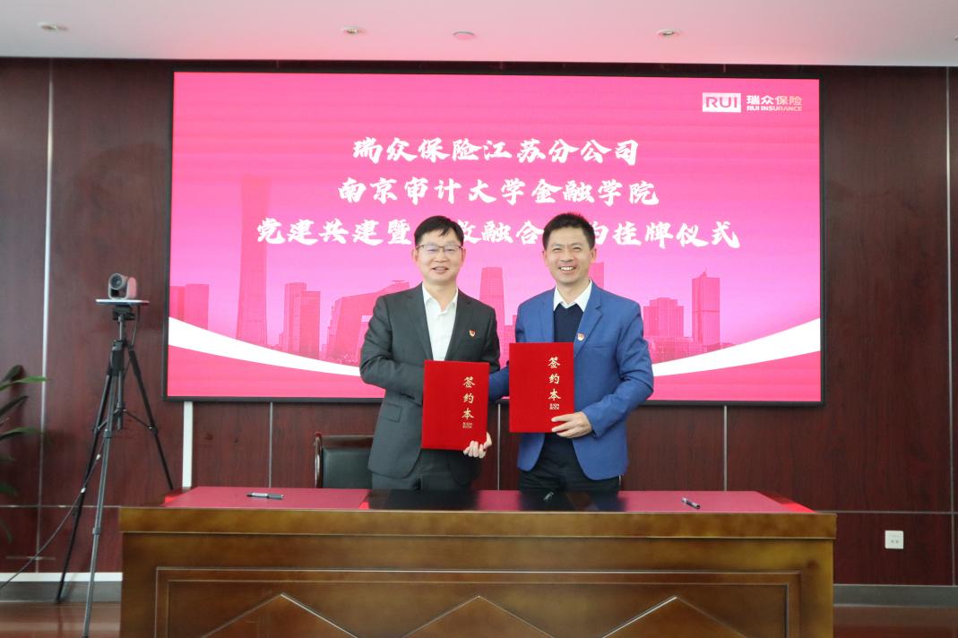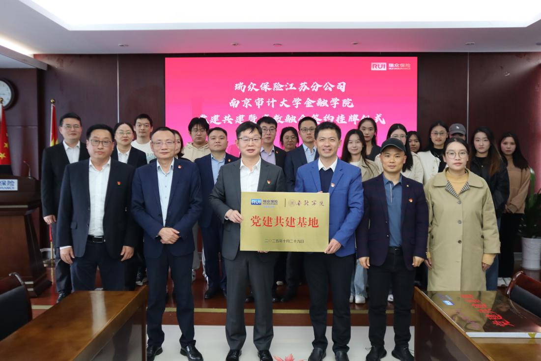 活动最后,南审新澳门六合彩 党委书记与瑞众保险江苏分公司总经理共同签订了《党建共建暨产教融合战略合作协议》,并为 “党建共建基地”“实践共建基地” 揭牌。此次签约挂牌标志着双方合作进入新阶段,未来双方将以党建为引领,在党员教育、人才培养、实践教学、科研合作等方面开展深度合作,实现党建与业务融合发展、学校与企业共赢共进的良好局面。