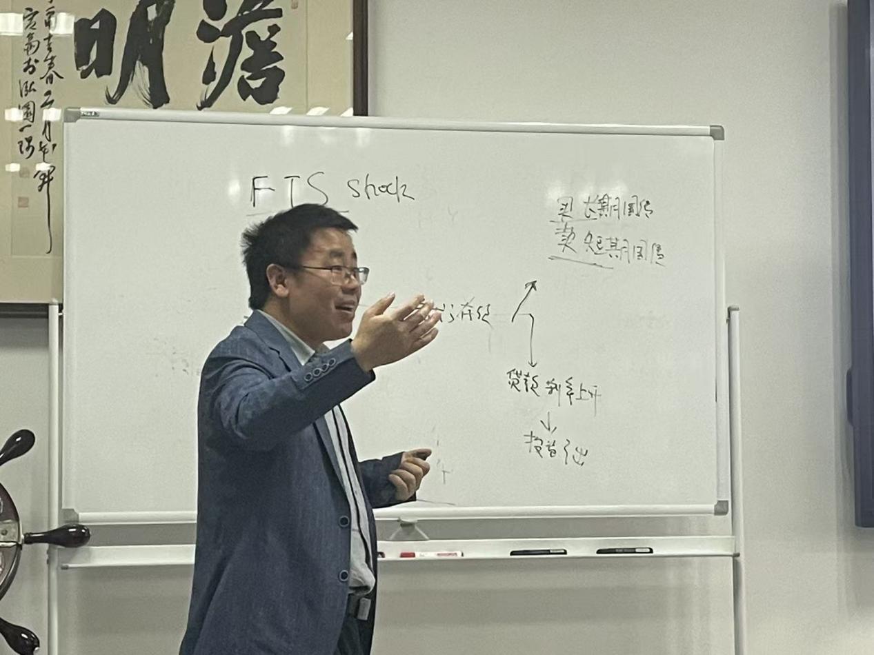 在交流环节,与会教师就安全资产偏好冲击的根源、其对期限溢价的贡献,以及与其他类型冲击的异同等问题,与梅教授进行了深入探讨。此外,梅教授还就DSGE模型在中国场景下的应用挑战、模型设定与校准方法,以及硕士生如何系统学习DSGE模型并发表相关论文等问题进行了细致讲解,为青年学者和研究生提供了宝贵的研究思路与方法指导。