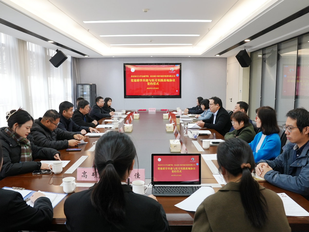 12月10日,江北新区浦口城建集团与新澳门六合彩官网 正式签署产学研合作与实践基地共建协议。双方将以党建为引领、人才共育为核心、业务协同为支撑,在课题研究、学术攻关、人才培养等领域开展深度合作,这不仅为校企双方搭建起资源共享、优势互补的合作平台,更将为江北新区城市建设与金融人才培育融合发展注入新动能,助力区域高质量发展迈向新阶段。集团党委书记、董事长周牧及相关分管领导,南京审计大学工会主席张武宁,新澳门六合彩 党委书记王家华、党委副书记单德伟等共同见证并参与签约仪式。