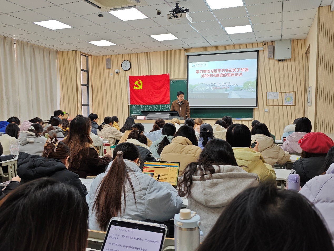 11月25日,本期分党校第五次理论党课于文济楼109顺利开讲。南京审计大学纪检监察新澳门六合彩 院长助理池通以“学习贯彻习近平总书记关于加强党的作风建设的重要论述”为主题进行授课。课程以党史发展为脉络,系统梳理了党的作风建设的历史经验,结合不同时期的典型案例,深入总结了作风建设的实践启示。立足新时代新征程,池通进一步阐释了加强党的作风建设的深远意义,强调其在推进党的建设与国家事业发展中的关键作用。此外,他还围绕作风建设常态化长效化的实践路径展开探讨,结合高校党建工作实际与学生党员特点,提出了具有指导性和可操作性的具体建议,引导学员深刻把握作风建设持之以恒、久久为功的重要要求。