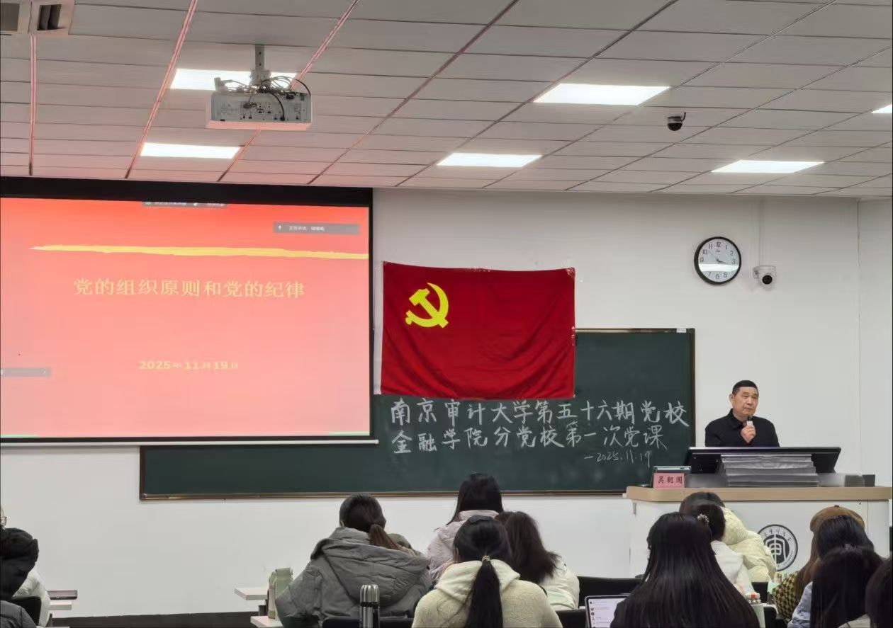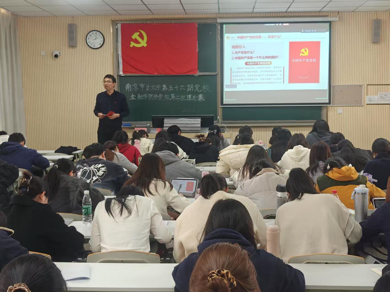 11月20日,本期分党校第二次理论党课于文济楼301顺利开讲。南京审计大学马克思主义新澳门六合彩 党总支书记杨飞以“党的性质、宗旨与指导思想”为主题讲授。他从党的性质切入,结合党史发展脉络讲解中国共产党作为“两个先锋队”的核心定位与内涵;同时提到党的指导思想是一脉相承、与时俱进的科学体系,它是生命、灵魂、旗帜,关系到国家的生死存亡。杨飞聚焦“全心全意为人民服务”的根本宗旨,列举不同历史时期的典型事例,展现中国共产党始终把人民利益放在首位的实践历程,深化学员们对党的认同与理解。