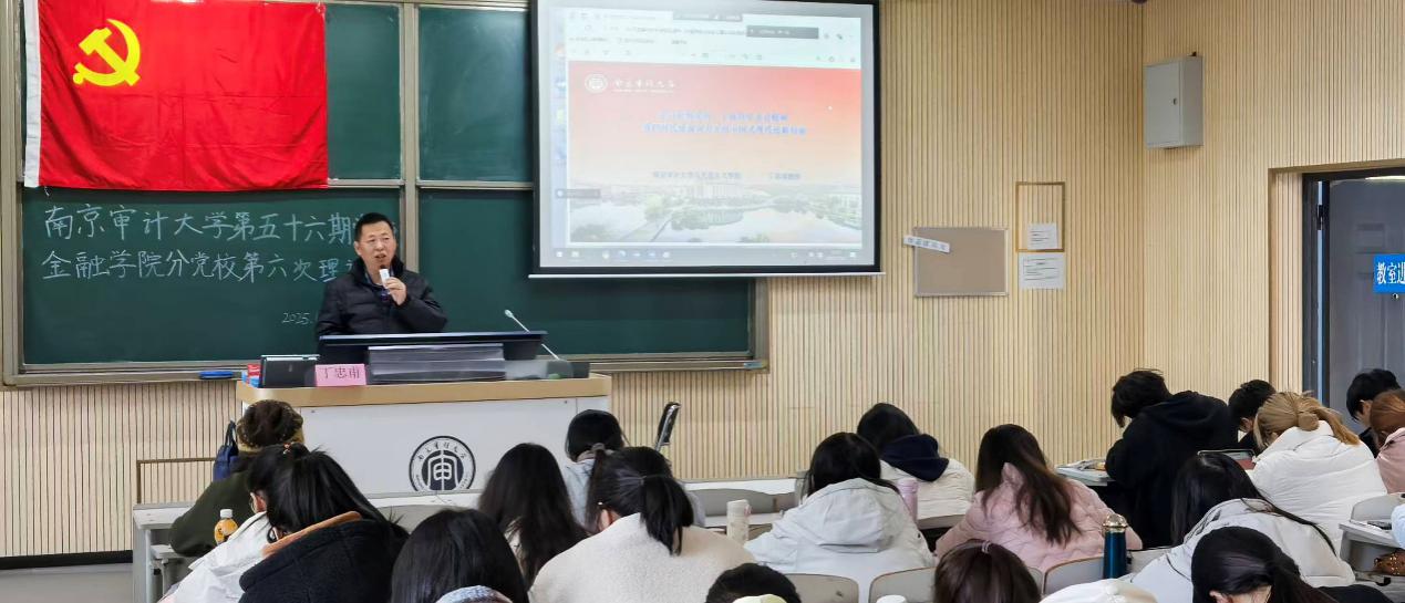 11月26日,本期分党校第六次理论党课于竞秀北楼208顺利开讲。南京审计大学马克思主义新澳门六合彩 教授丁忠甫以“学习党的二十届四中全会精神”为主题进行授课。课堂上,丁忠甫深入解读会议核心要义,阐释其对新时代发展的指导作用,并从理论逻辑与实践路径两方面,系统剖析会议精神的内在体系。在中国式现代化的时代背景下,他带领学员探讨了青年在推动现代化进程中的责任与角色,并立足金融专业特色,引导学员思考如何将专业学习与国家战略需求深度融合。课程还通过典型案例与现实议题分析,帮助学员深刻认识自身肩负的时代使命,进一步明确在服务中国式现代化大局中践行初心、担当作为的实践方向。