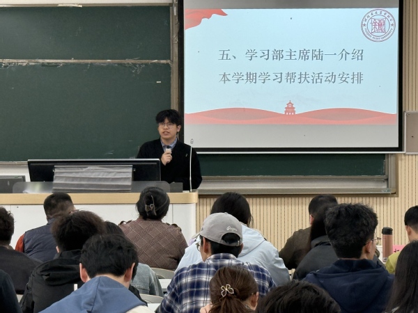学生会主席陆一同学详细介绍了本学期帮扶计划。计划聚焦精准匹配、全程监督、成效跟踪三大核心,明确工作目标、细化实施路径,确保新学期学业帮扶更规范、更高效、更走心。